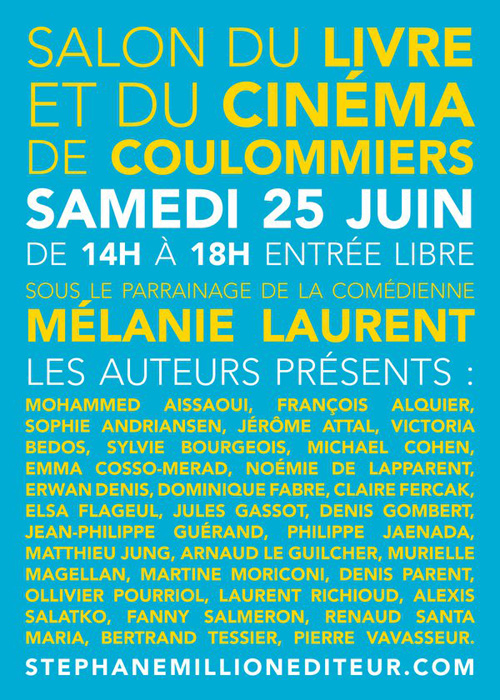 Table ronde "Littérature et Cinéma" animée par Renaud SANTA MARIA. Avec Philippe JAENADA, Mélanie LAURENT (marraine du Salon), Michaël COHEN, Renaud SANTA MARIA, Delphine DE LA PANNETERIE, Jean-Philippe GUERAND et Ollivier POURRIOL (absent sur cette photo). |