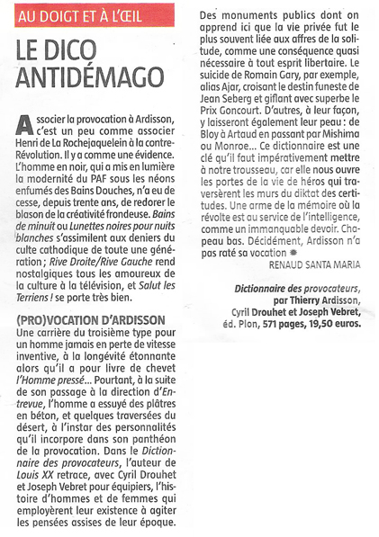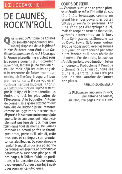 - Bakchich Hebdo: Chronique littéraire hebdomadaire (2009 et 2010)